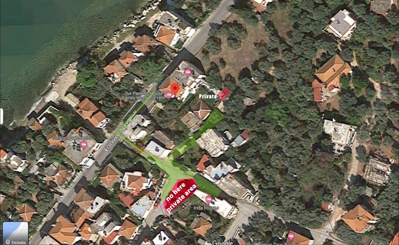 The sea is just 30 meters away. The water is crystal clear, and the seabed is sandy—except for the first 3–4 meters where there are rocks, though a pathway has been cleared. As you’ll see, there is no beach: around 25 years ago, using the excuse of protecting the seaside houses from winter storms, the beautiful pebble beach that once existed was destroyed by placing large rocks and concrete blocks. Promises that it would eventually be restored have proven empty. Still, a morning swim—or one at sunset—is well worth it!